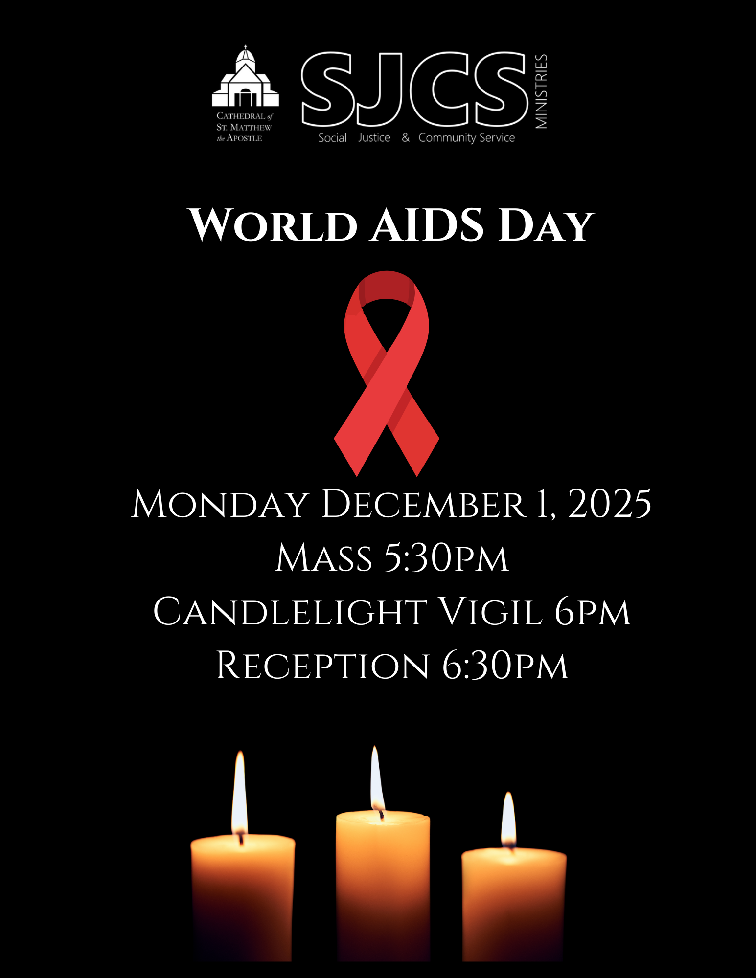 The 5:30pm Mass will be followed by a candlelight prayer vigil in English and Spanish on the Cathedral steps. Reception following the Prayer Vigil in the North Conference Room. All are welcome!