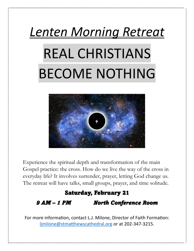 The retreat will include talks, small groups, prayer, and solitude.