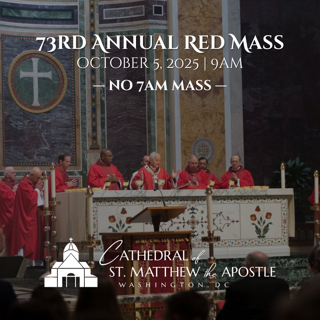The Red Mass is celebrated annually at the Cathedral of St. Matthew the Apostle, traditionally on the Sunday before the first Monday in October, which marks the opening of the Supreme Court's annual term. Its purpose is to invoke God's blessings on those responsible for the administration of justice as well as on all public officials.His Eminence, Cardinal McElroy, will be Principal Celebrant.To learn more about the history of the Red Mass, please click here.Doors open at 8am. Music begins at 8:45 a.m.Mass begins at 9:00 a.m.